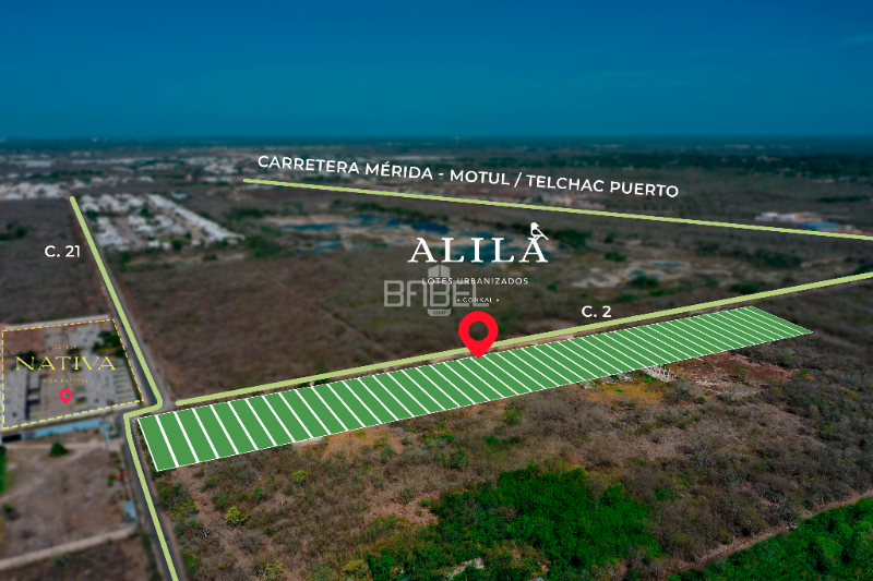 Alila, un emocionante desarrollo urbano en donde encontrarás 47 lotes urbanizados con todos los servicios necesarios para empezar a construir de manera inmediata. Alila está ubicado a tan sólo 12 minutos del periférico de Mérida, al noreste de la ciudad.